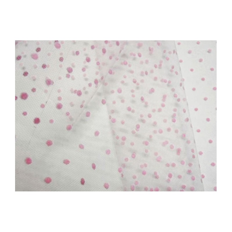 SCAMPOLO CM 90X150 TULLE FLOCCATO ROSA POIS ROSA